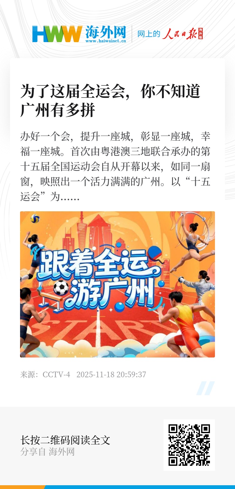 从两只可爱的小海豚带来的文化共鸣,到赛事催生的融合热潮,全运会不仅是体育的盛典,更是广州文旅融合发展的加速器。广州正以开放包容的姿态,展现一座现代化国际大都市的活力与温度。