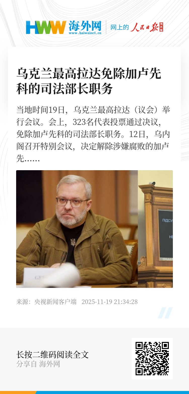 12日,乌内阁召开特别会议,决定解除涉嫌腐败的加卢先科司法部长职务。乌克兰国家反腐败局和反腐败专门检察官办公室10日宣布,反腐部门的调查结果显示,乌能源部现任和前任官员与商人组成的“庞大犯罪集团”涉嫌洗钱、非法敛财等,该“犯罪集团”已被查明的洗钱金额近1亿美元。(总台记者 董薇)