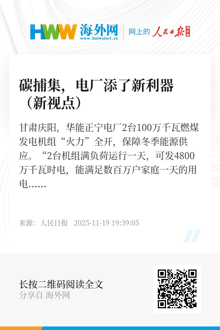 在我国,煤电以不到四成的装机占比,贡献了超五成的发电量和七成的顶峰能力,发挥了电力保供“顶梁柱”作用,但也面临着降碳难题。华能正宁电厂的碳捕集示范工程,有效破解了难题,技术和装备均实现全国产化。