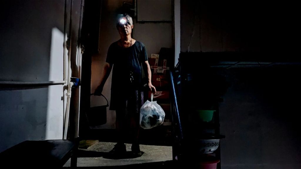 过去楼道里一度没有灯,周密要头顶矿灯去倒马桶。受访者供图