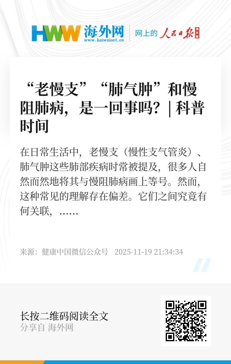 在日常生活中,老慢支(慢性支气管炎)、肺气肿这些肺部疾病时常被提及,很多人自然而然地将其与慢阻肺病画上等号。然而,这种常见的理解存在偏差。它们之间究竟有何关联,又有何区别?该如何正确区分?