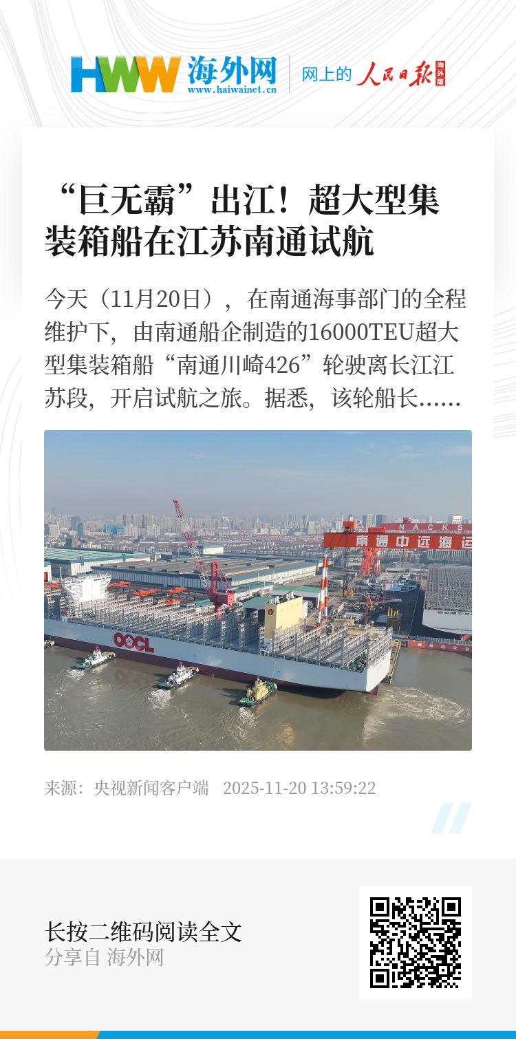 今天(11月20日),在南通海事部门的全程维护下,由南通船企制造的16000TEU超大型集装箱船“南通川崎426”轮驶离长江江苏段,开启试航之旅。