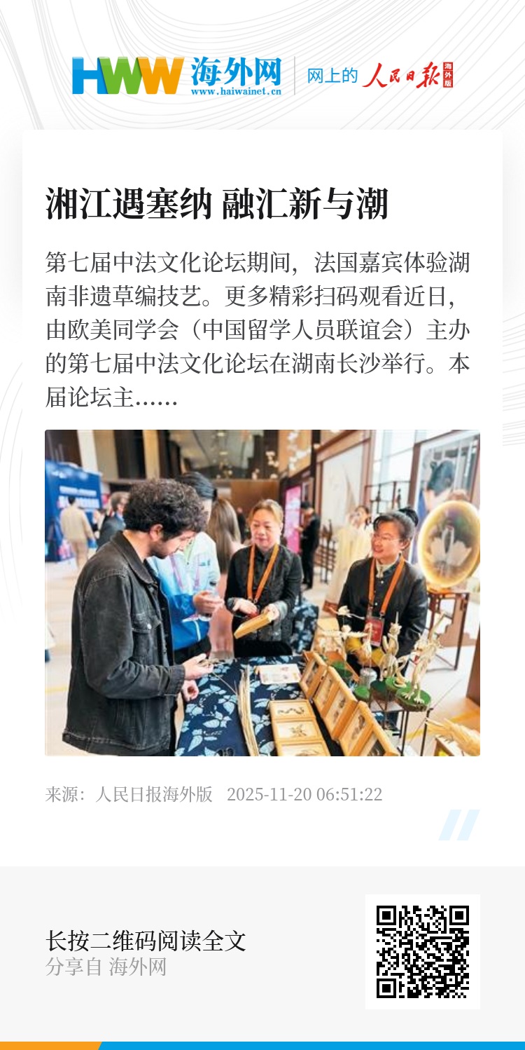 论坛落幕,湘江与塞纳河的对话仍在继续。那些关于交流与对话的信念、AI与人文的共识、青年与传承的期许,在时光里生根发芽,为文明交流互鉴添上一笔温柔而坚定的亮色。(本报记者 孙亚慧文/图)