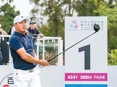 吴阿顺在十五运会高尔夫球项目比赛中。