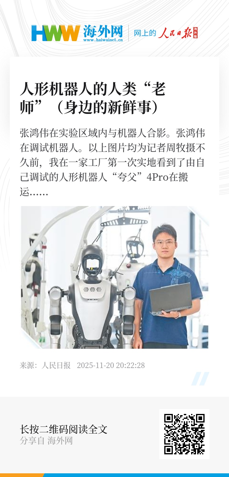 (作者张鸿伟为人形机器人应用开发工程师,人民日报记者田先进采访整理)