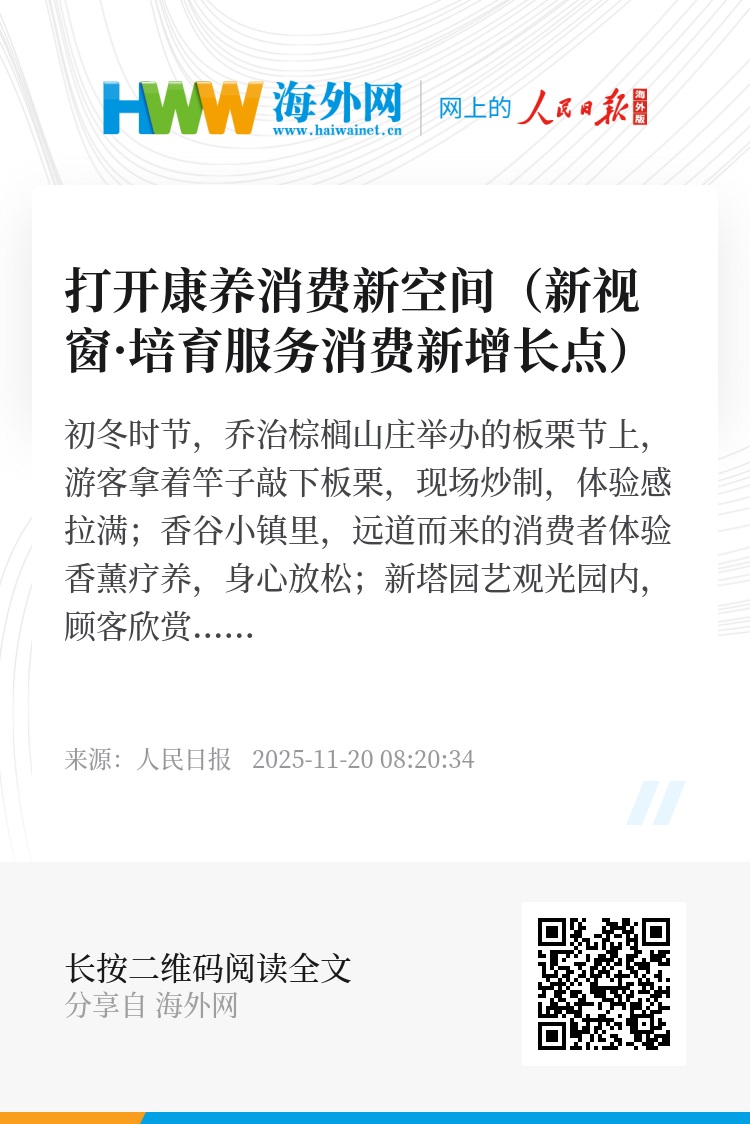 初冬时节,乔治棕榈山庄举办的板栗节上,游客拿着竿子敲下板栗,现场炒制,体验感拉满;香谷小镇里,远道而来的消费者体验香薰疗养,身心放松;新塔园艺观光园内,顾客欣赏森林景观,品尝健康安全的森林食品……在江西金溪县,人们乐享自然风光与文化景观,消费热度不断攀升。