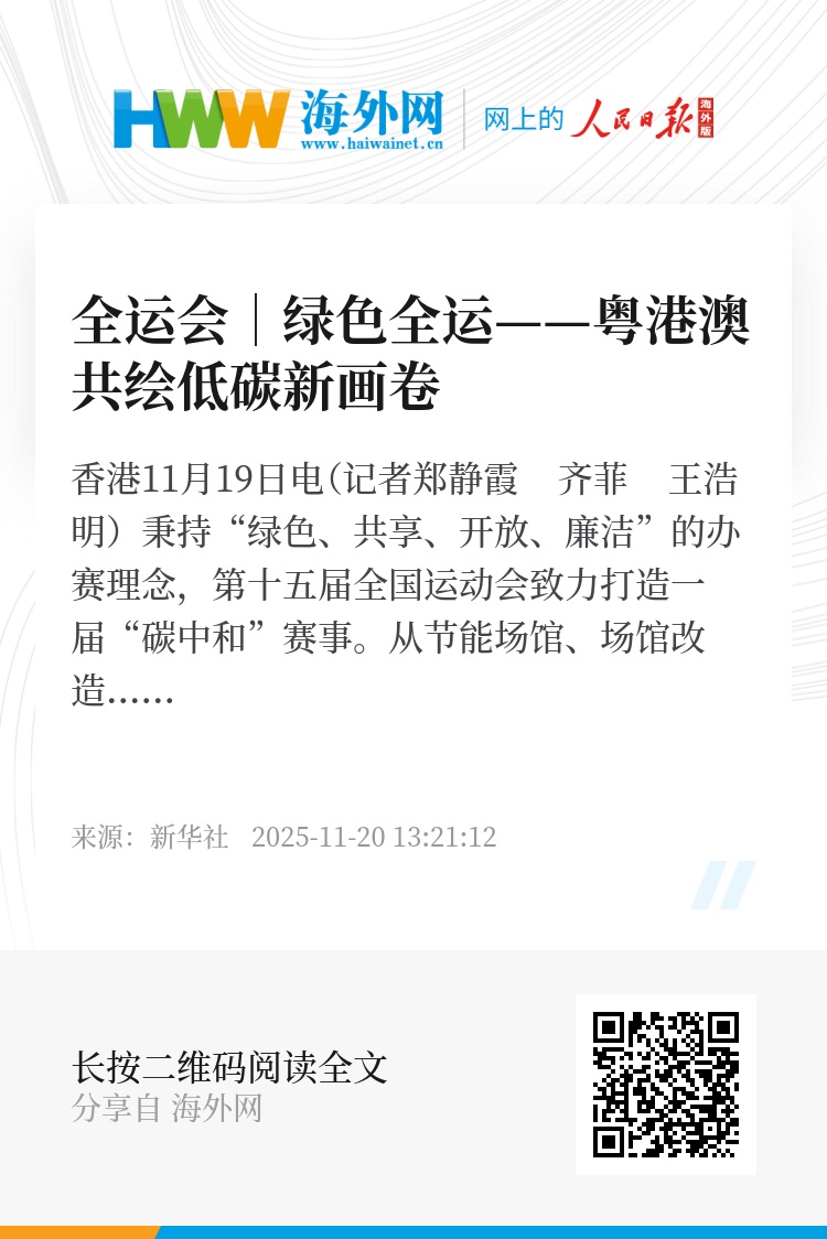 新华社香港11月19日电(记者郑静霞 齐菲 王浩明)秉持“绿色、共享、开放、廉洁”的办赛理念,第十五届全国运动会致力打造一届“碳中和”赛事。从节能场馆、场馆改造到清洁交通,绿色低碳理念已融入粤港澳三地赛事运行的各个环节。