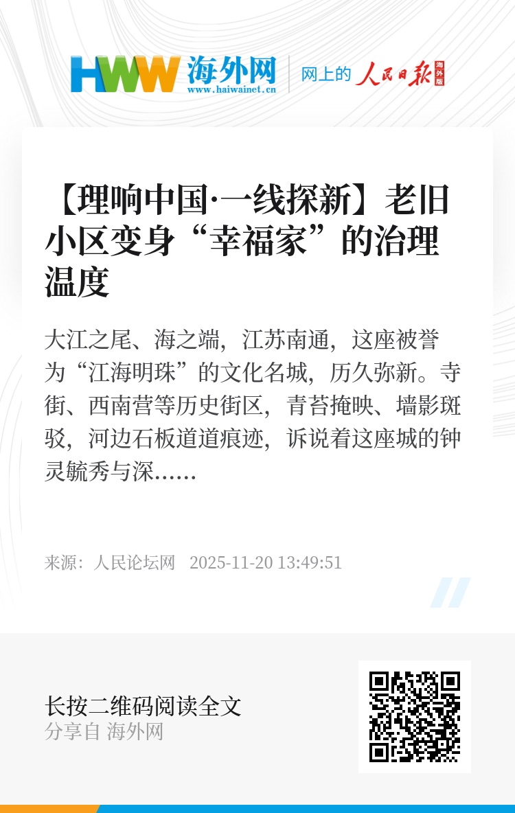 站在城市更新的新起点,崇川区的探索有力证明:只要坚持党建引领、人民至上、长效治理,就能让“老破小”焕发新生机,让城市治理更有温度、更具智慧。正如居民张大爷所言:“现在的小区,路平了、灯亮了、心齐了,这才是我们想要的幸福生活!”