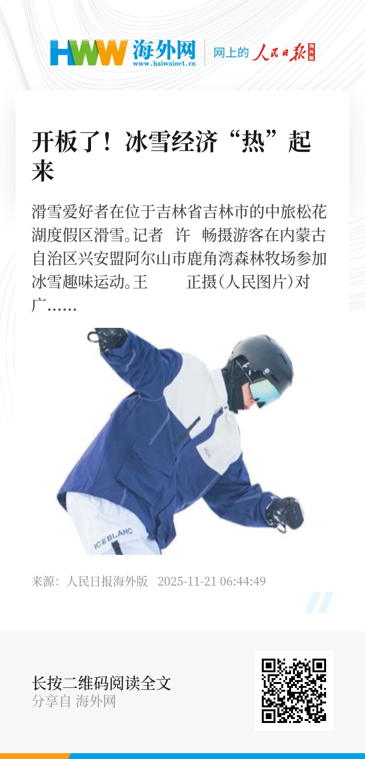 对广大滑雪爱好者来说,“开板”是拥抱冬天的独特方式。近日,随着气温下降,新雪季开启,各地雪场迎来八方雪友。从北国雪原到南海之滨,从天然雪场到室内冰场,冰雪旅游呈现出更加丰富多元的发展图景。