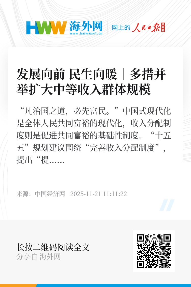 “十四五”以来,我国人均国内生产总值从2020年的10632美元提升至2024年的13445美元,连续两年超过1.3万美元,位居中等偏上收入国家前列。“十五五”规划建议提出:到2035年“人均国内生产总值达到中等发达国家水平”。这既需要着力推动经济实现质的有效提升和量的合理增长,充分释放经济增长潜力,也有赖于橄榄型分配格局的形成。