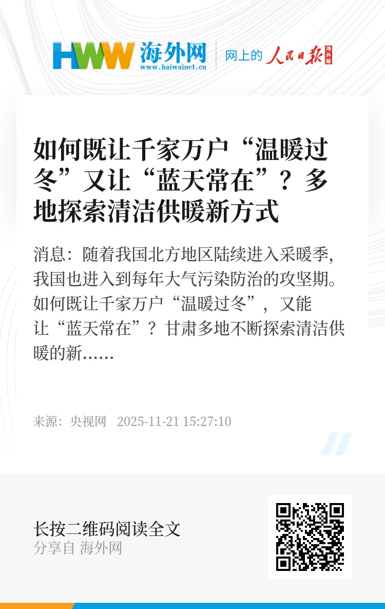 央视网消息:随着我国北方地区陆续进入采暖季,我国也进入到每年大气污染防治的攻坚期。如何既让千家万户“温暖过冬”,又能让“蓝天常在”?甘肃多地不断探索清洁供暖的新方式。