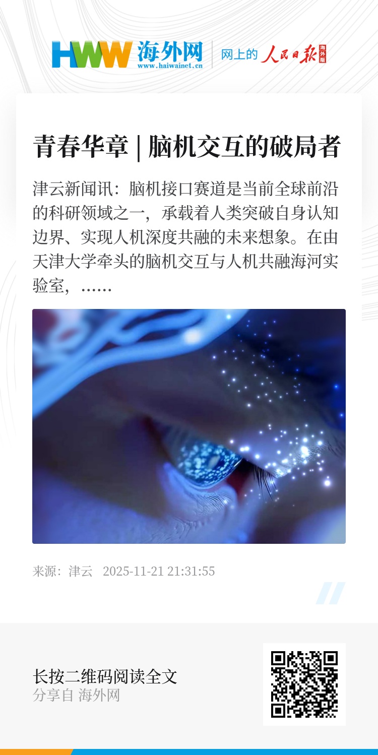 津云新闻讯:脑机接口赛道是当前全球前沿的科研领域之一,承载着人类突破自身认知边界、实现人机深度共融的未来想象。在由天津大学牵头的脑机交互与人机共融海河实验室,一支平均年龄仅37岁的年轻科研团队,在这条赛道上书写着中国科技的“硬核”答卷。