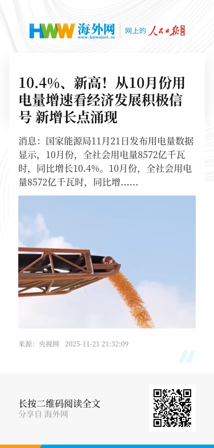 用电量数据也被称为反映经济变化的“晴雨表”之一,从刚刚国家能源局发布的数据中可以看到,10月份用电量增速达到了两位数,创下年内新高,10.4%的增速背后可以看出经济社会什么变化?来看专家的解读。