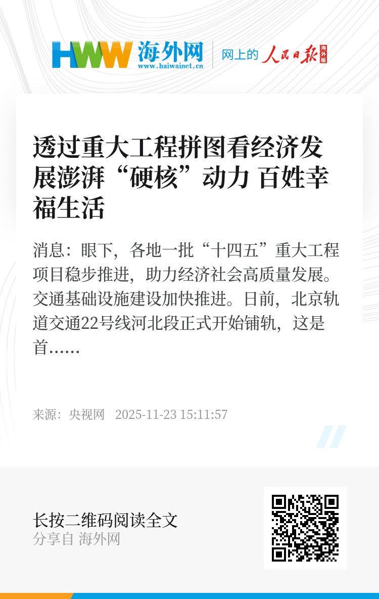 央视网消息:眼下,各地一批“十四五”重大工程项目稳步推进,助力经济社会高质量发展。