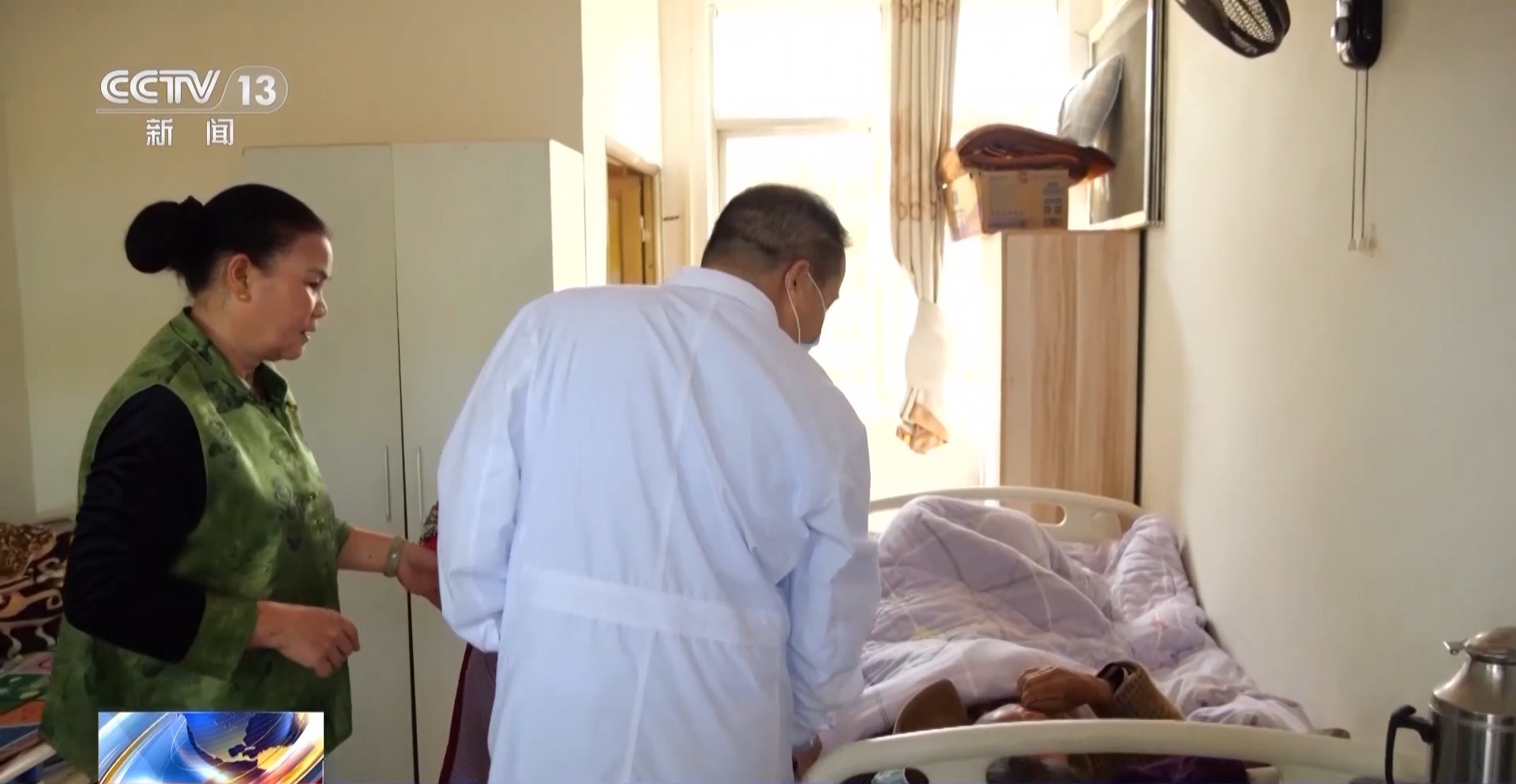 一路上,医务人员跟村里的养老服务人员保持联系,指导他们正确护理患病老人。
