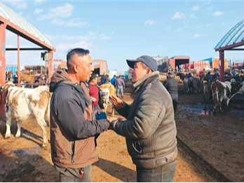 巨大的交易量,吸引了3000多名和马军一样的经纪人活跃在活畜交易市场。中午过后,黄公巴扎的牲畜交易接近尾声,停在巴扎内大大小小的货车开始装运牛羊了,马军将自己收购的40头牛装车拉回自家圈里,“等下个巴扎日收够了量就给客户发过去。”(本报记者 李亚楠)