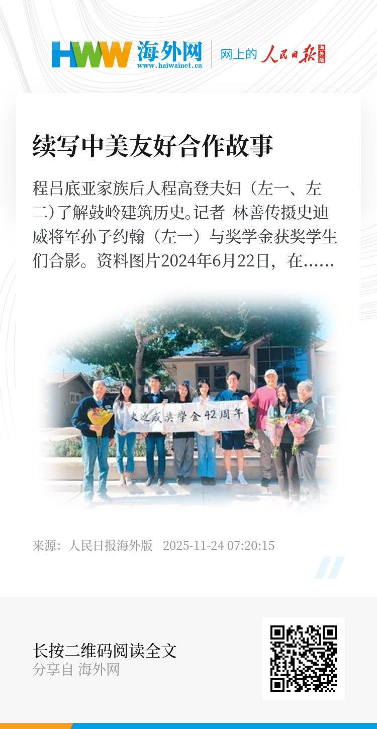 这段旅程,不仅唤醒了尘封的记忆,更重启了史迪威家族与中国的缘分。史文思姐妹俩发现,自己从未忘记儿时学会的中文。20世纪80年代,姐妹俩与两位华人朋友在美国共同创立史迪威奖学金,资助中国学子赴美攻读硕士学位。