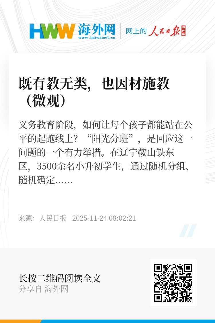 在辽宁鞍山铁东区,3500余名小升初学生,通过随机分组、随机确定班号、随机确定班主任抽签顺序以及班主任随机抽取班级的“四次随机”机制完成初中分班;安徽严禁组织入学考试分班,设立重点班、快慢班等行为;重庆利用政务工作平台“渝快办”系统,邀请家长参与随机分班过程……2025年秋季学期,全国多地推行义务教育“阳光分班”,通过科学、公平、公开的方式,均衡分配班级学生和师资,有效促进教育资源均衡配置。