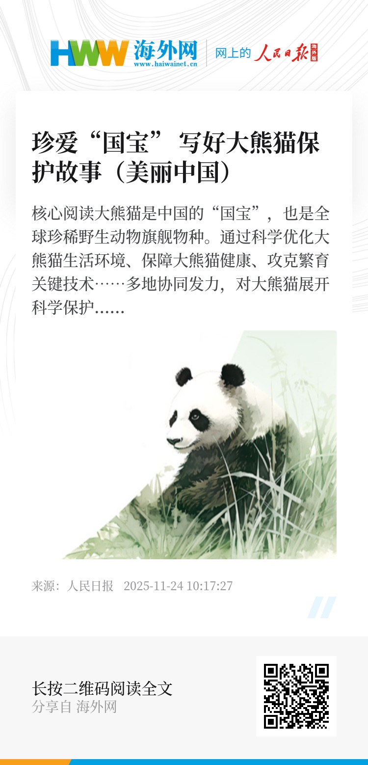 大熊猫是中国的“国宝”,也是全球珍稀野生动物旗舰物种。通过科学优化大熊猫生活环境、保障大熊猫健康、攻克繁育关键技术……多地协同发力,对大熊猫展开科学保护,有效维护种群可持续发展。