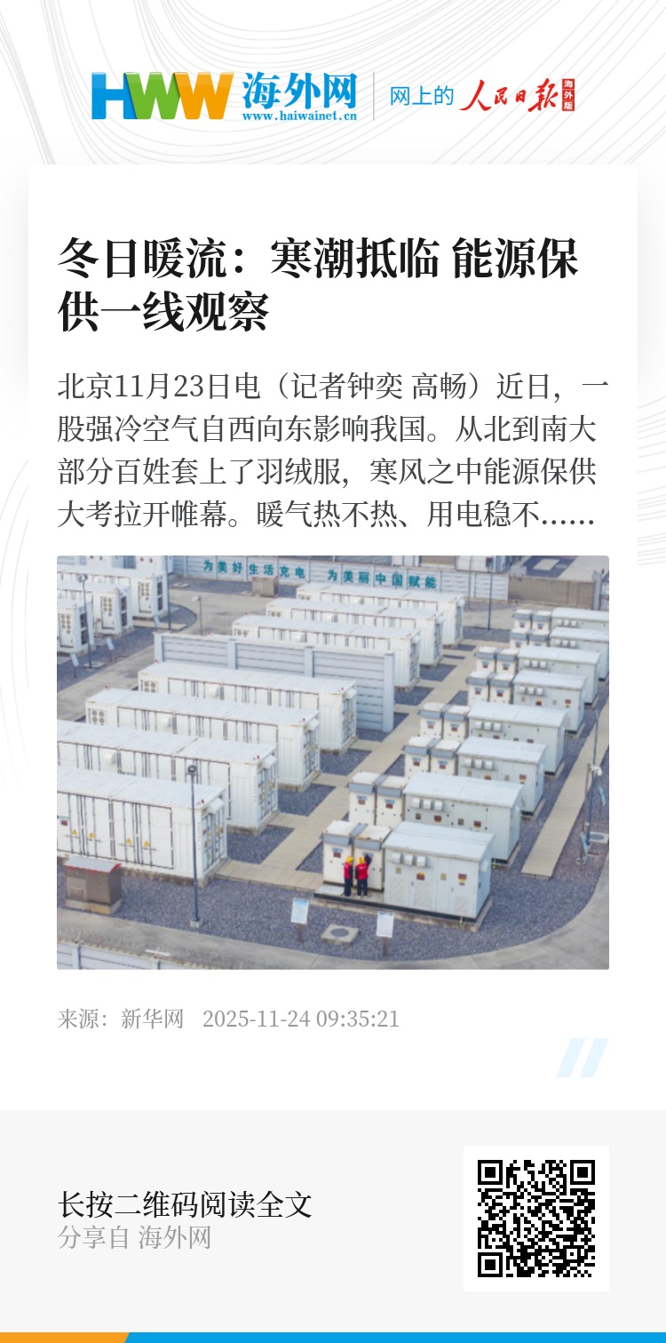 新华网北京11月23日电(记者钟奕 高畅)近日,一股强冷空气自西向东影响我国。从北到南大部分百姓套上了羽绒服,寒风之中能源保供大考拉开帷幕。
