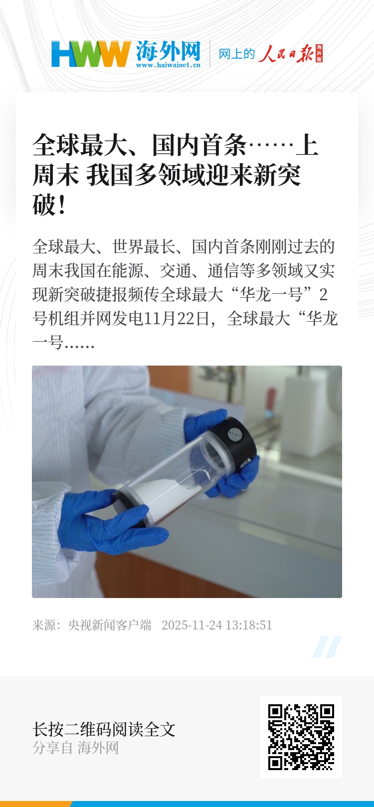 11月22日,《全球能源转型报告(2025)》数据显示,我国已建成全球最大、最完整的清洁能源产业链。