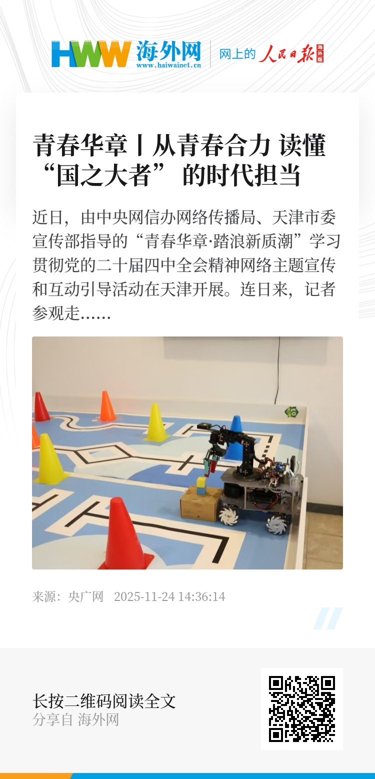 青年兴则国家兴,青年强则国家强。从天津高校的协同创新实践,到全国范围内的青年奋进身影,越来越多的中国青年以科技创新为翼、以家国情怀为魂,在追求个人成长的同时心系民族复兴伟业,让青春活力在服务国家战略、推动区域发展的实践中充分迸发。这份跨越校园与社会、连接个体与国家的青年合力,正是凝聚力与向心力的生动写照,更是实现中华民族伟大复兴中国梦的磅礴力量。(央广网记者 文峰)