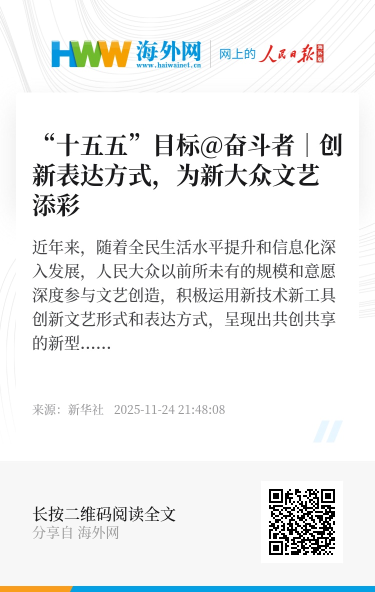 迈上“十五五”新征程,人民群众物质生活越丰富,精神文化需求就越突出,就更需要提升文化服务和文化产品供给能力,从而更好满足人民精神文化生活新期待。“十五五”规划建议提出,广泛开展群众性文化活动,繁荣互联网条件下新大众文艺。