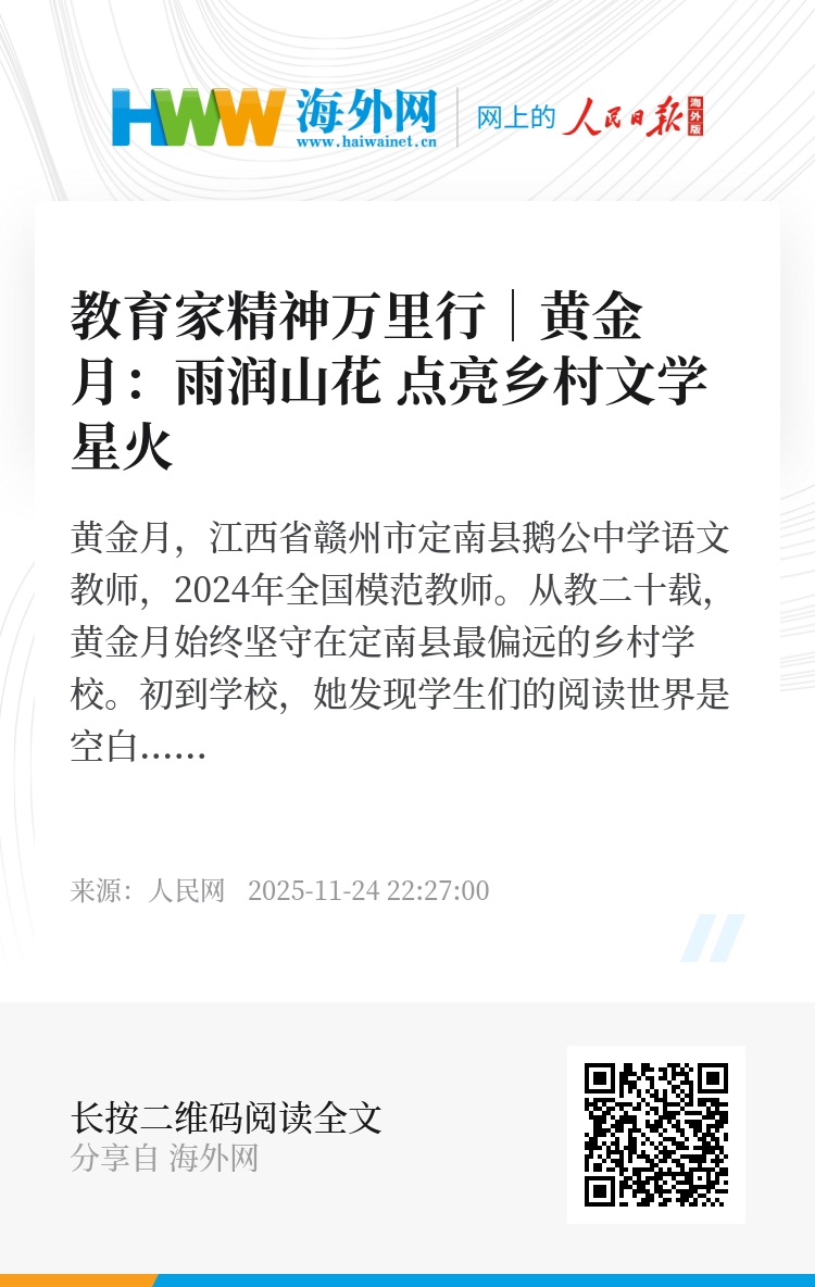 黄金月,江西省赣州市定南县鹅公中学语文教师,2024年全国模范教师。