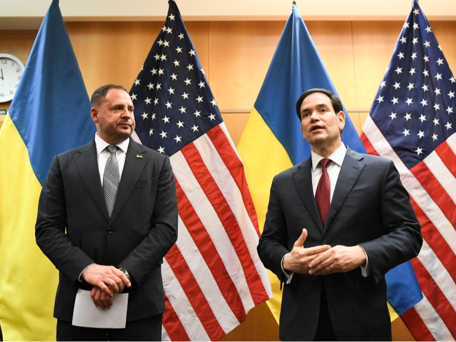 11月23日,在位于瑞士日内瓦的美国常驻联合国日内瓦办事处代表团驻地,美国国务卿鲁比奥(右)和乌克兰总统办公室主任叶尔马克共同会见记者。新华社记者连漪摄
