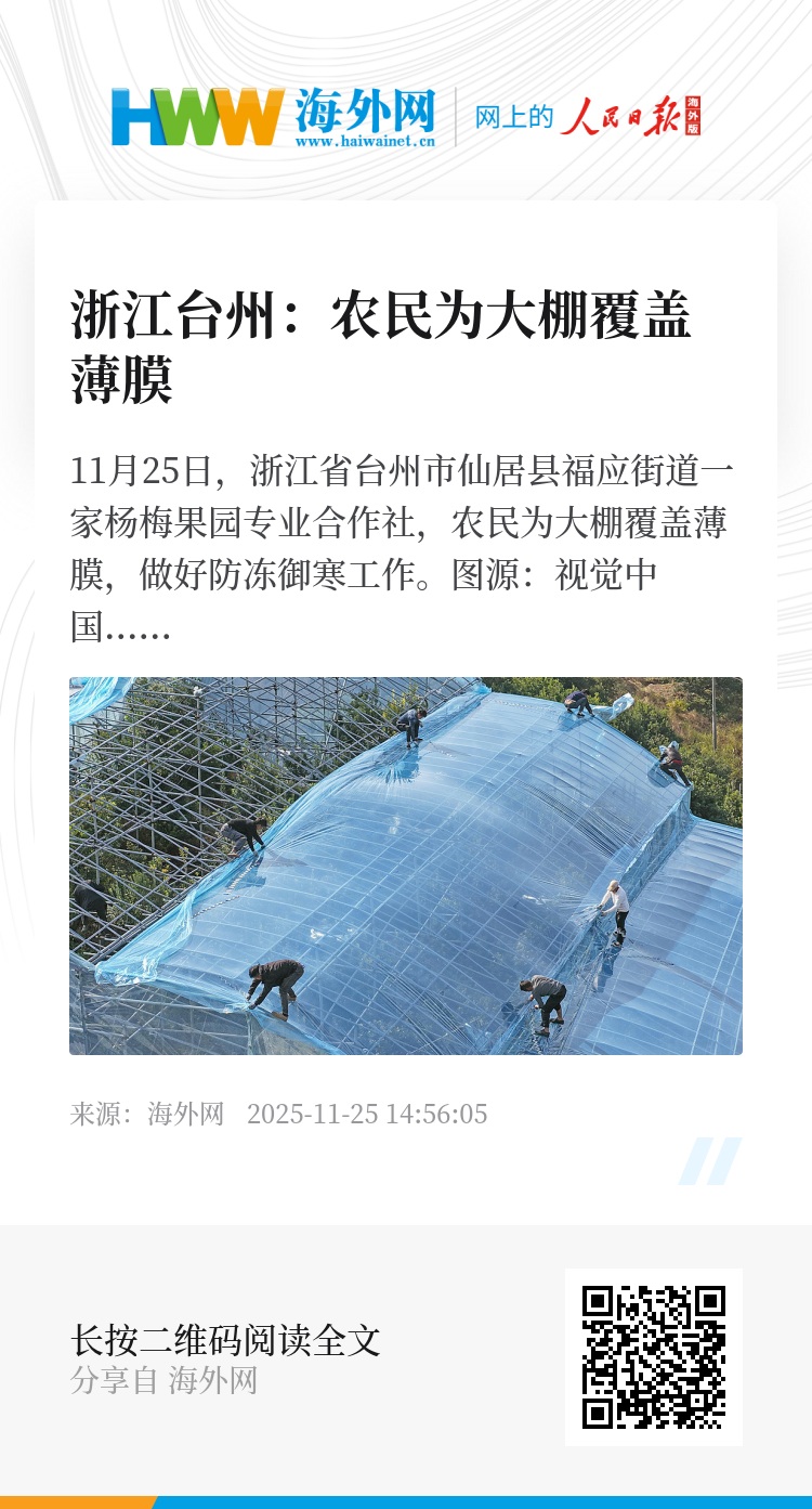 32911316,.浙江台州:农民为大棚覆盖薄膜,.2025-11-25 14:56:05,.204309,.陈亚楠、姚凯红