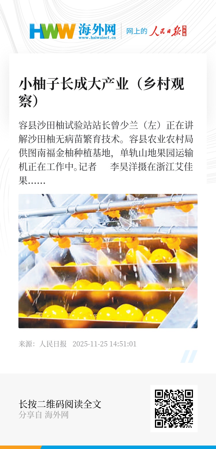 柚子一头连餐桌,一头连田头。特色产区如何做好“土特产”这篇文章?小柚子如何长成富民产业?近日,本报记者深入田间地头,沿着柚子产业链探寻发展之道。