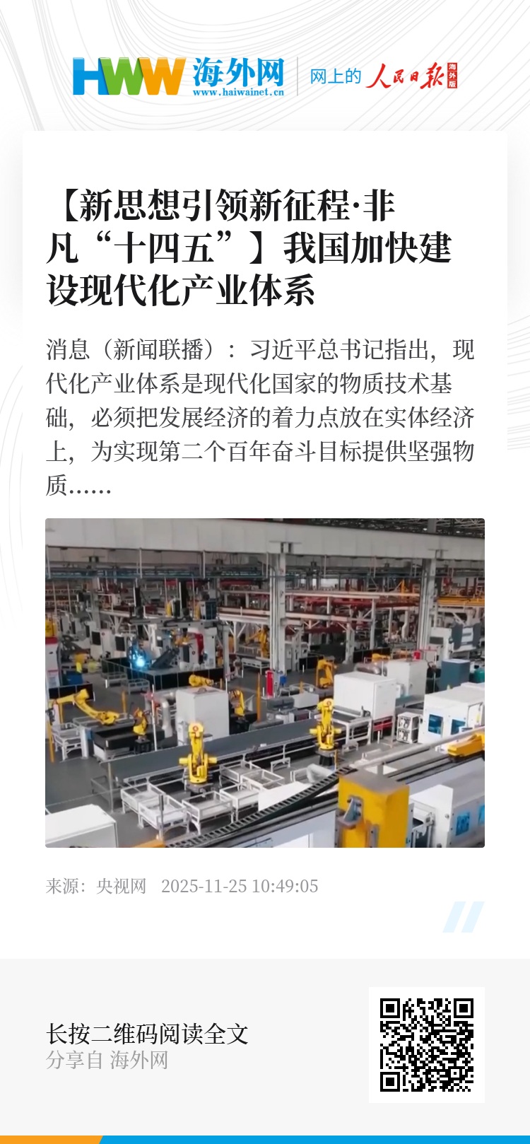 “十四五”期间,我国以科技创新为引领、以实体经济为根基,加快建设现代化产业体系,为中国式现代化注入澎湃动力。