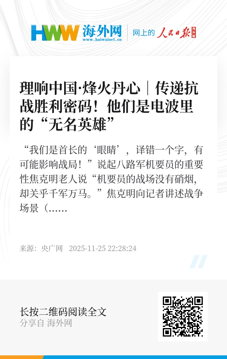 时光缄默,山河有声。中国人民抗日战争暨世界反法西斯战争胜利80周年之际,央广网特别推出《理响中国·烽火丹心》AIGC系列微视频——在《时光的底片》《时光的证物》《时光的信使》三篇章中用数字技术重述峥嵘岁月,弘扬伟大抗战精神。让我们共同铭记,一起奔赴未来之路。