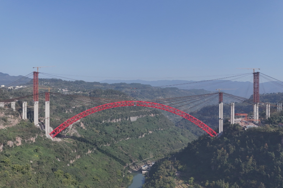 作为全线最大的重难点控制性工程,建设者突破常规拱桥施工思路,首次采用主动重分配上下弦应力成拱,应力与线形双控的施工理念,对施工精度和安全控制提出极高要求;建设团队攻克了全栓接钢桁拱桥节段应力和线形双控、有限空间桁片姿态调整、拱肋数字拼装与线形适时纠偏的三大核心施工难题。