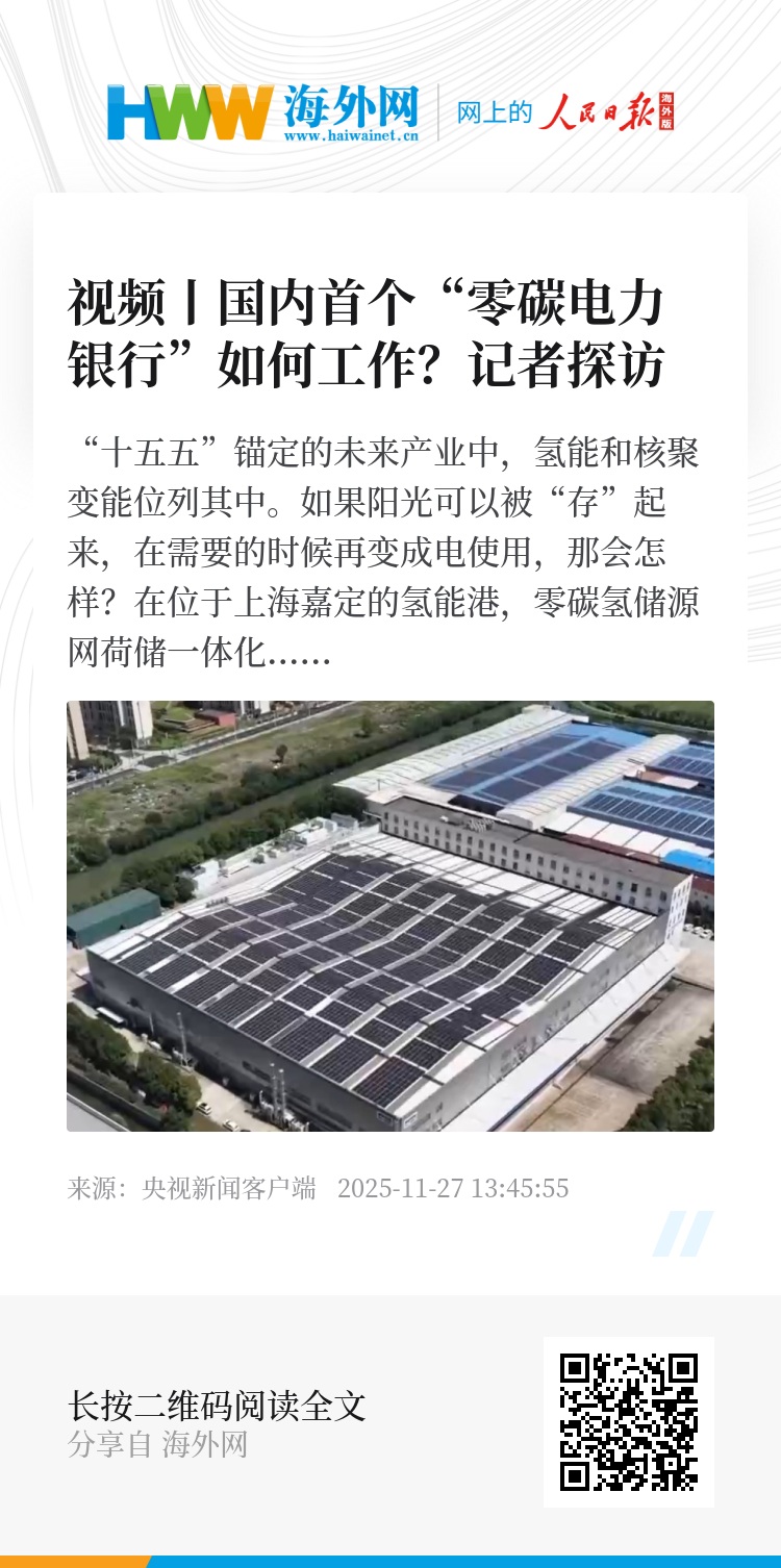 在上海首个实现“电—氢—电”全链条闭环的零碳能源系统,总台记者盛瑾瑜看到,这里就像一家特殊的“银行”——不过它存储得是绿色能量。