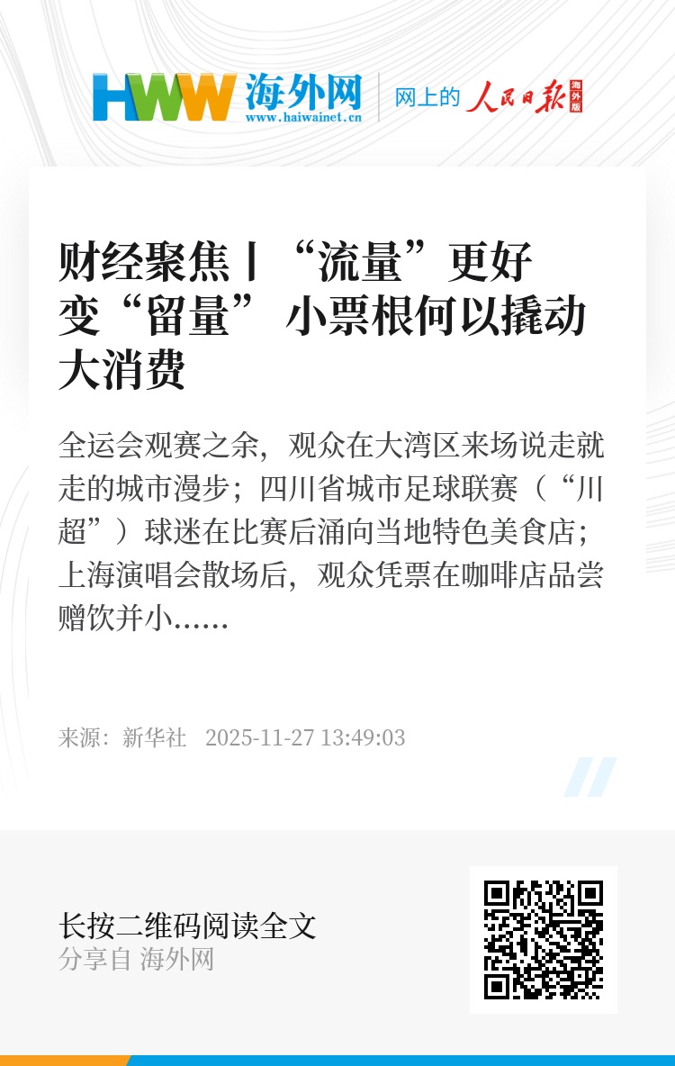 近期,类似场景在多地频频上演。消费者在赛事或演出结束后,并不急着离开,而是沿着票根延伸的路径继续体验城市,小小票根成为激活消费的“金钥匙”。