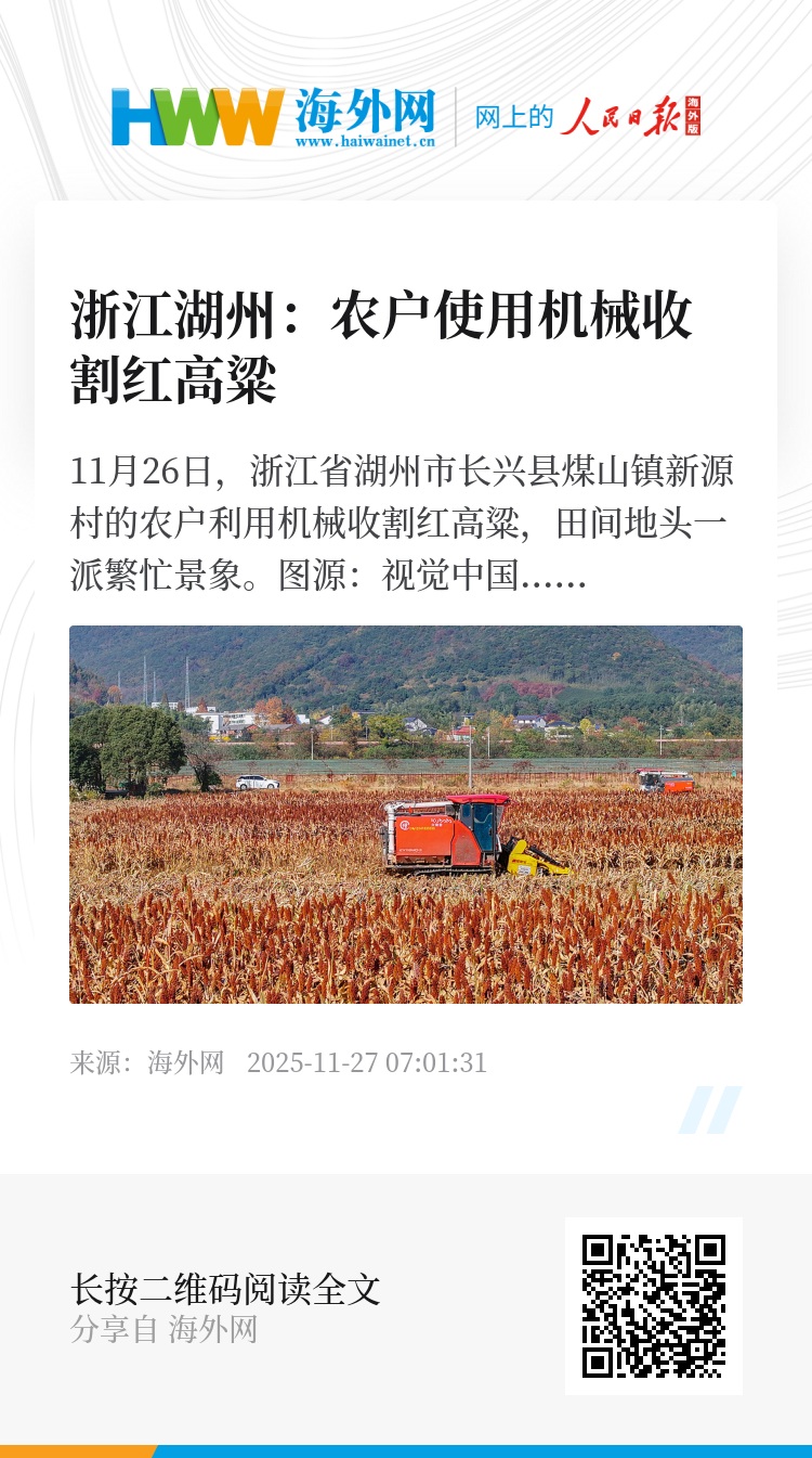 32911704,.浙江湖州:农户使用机械收割红高粱,.2025-11-27 07:01:31,.204441,.张荣耀、姚凯红