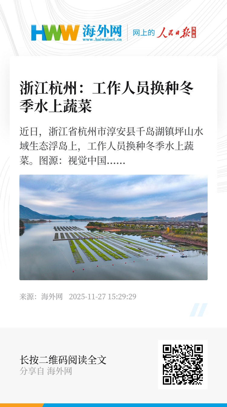 32911827,.浙江杭州:工作人员换种冬季水上蔬菜,.2025-11-27 15:29:29,.204309,.陈亚楠、姚凯红