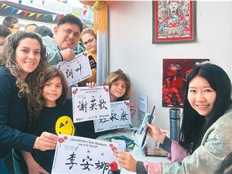 秘鲁天主教大学孔子学院参加当地文化展,设置“书写中文名字”展位。