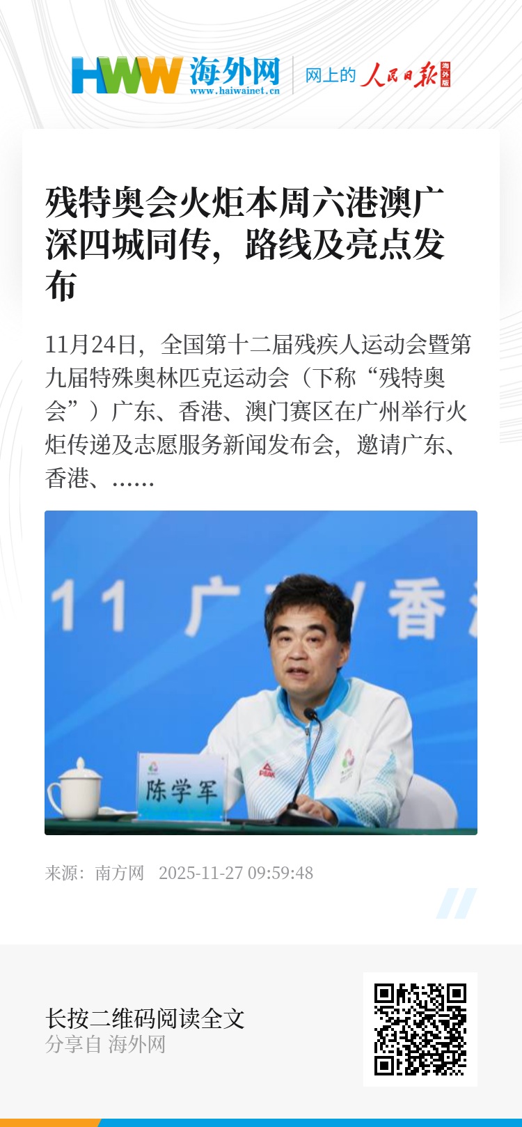 本届残特奥会首次由粤港澳三地联合承办,当前,各项筹备任务正紧锣密鼓、有条不紊推进,火炬传递是其中一个重要环节。