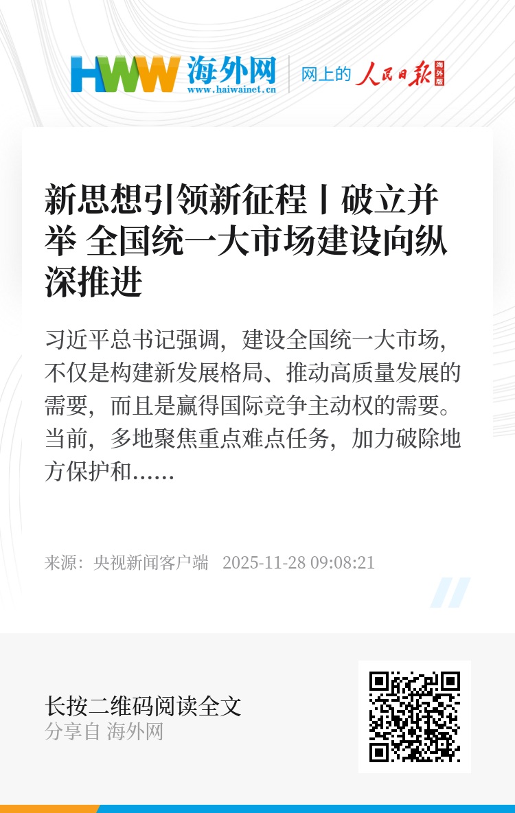 习近平总书记强调,建设全国统一大市场,不仅是构建新发展格局、推动高质量发展的需要,而且是赢得国际竞争主动权的需要。当前,多地聚焦重点难点任务,加力破除地方保护和市场分割,持续健全市场体系基础制度。破立并举间,全国统一大市场建设加速迈向纵深,不断为推动经济高质量发展注入强劲动力。