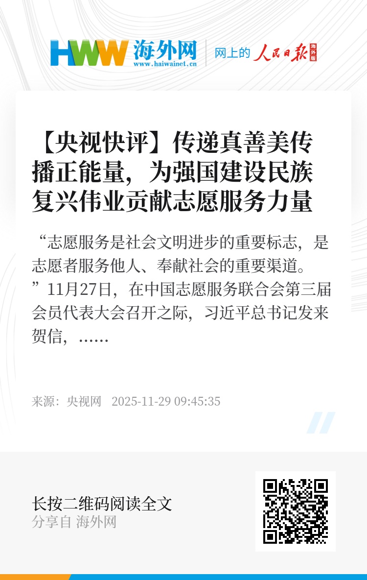 “志愿服务是社会文明进步的重要标志,是志愿者服务他人、奉献社会的重要渠道。”11月27日,在中国志愿服务联合会第三届会员代表大会召开之际,习近平总书记发来贺信,向大会的召开表示祝贺,向广大志愿者、志愿服务组织、志愿服务工作者致以问候。