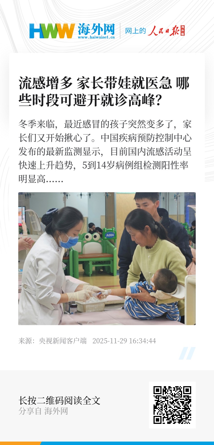 而随着因呼吸道疾病就诊的儿童数量加速增多,北京儿童医院近期24小时接诊不限号。医生提醒,无症状的成年人不代表没有感染,也需要做好防护。那么,当孩子出现流感症状,家长该怎么应对?送医时,哪些时段可以避开就诊高峰?