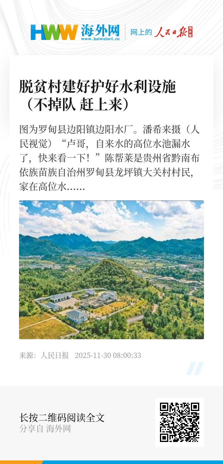 “农村饮水工程既管眼前,更管长远,是个精细活儿。要实事求是、因地制宜、精准推动,形成长效管护机制。”贵州省水利厅一级主任科员侯朝表示,贵州平均一年的管护资金为3亿元,但仍有缺口,需要持续推广规模化供水工程,改造集中式供水工程,升级分散式供水工程,为更多地方实现县域统管、公司专管创造条件。(本报记者 苏 滨)
