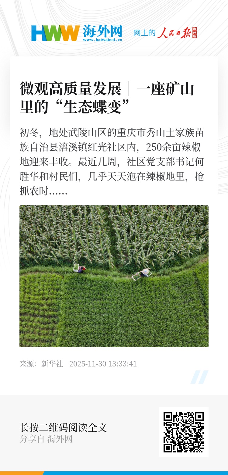 西南大学资源环境学院教授、水土保持与林学系系主任何丙辉表示,秀山曾因锰矿开采一度面临严重的环境挑战,但通过坚决地产业退出,科学地生态修复,以及大力培育生态种养业,成功实现了从“黑色经济”到绿色产业的华丽转身。