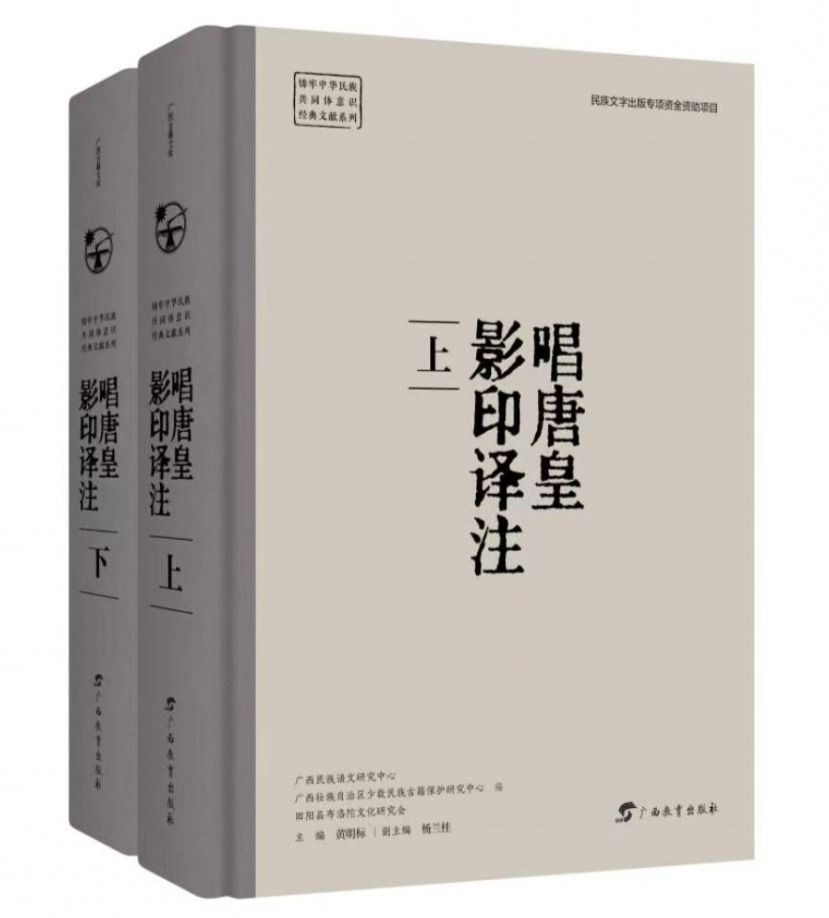 该书在2023年12月由广西教育出版社出版,为全国少数民族古籍工作“十四五”规划重点项目,入选民族文字出版专项资金资助项目,是“铸牢中华民族共同体意识经典文献系列”出版成果之一。《唱唐皇影印译注》是对壮族珍稀文献《唐皇》进行抢救性整理出版的融合出版物。《唐皇》流传于广西右江一带广大城乡地区,主要唱述唐朝前期从李渊到李旦这一历史时期所经历的改唐立周、废周复唐等波澜起伏的历史事件,是壮族在吸收中华历史故事题材的基础上进行创造性改编而形成的具有鲜明文化融合性特征的长篇叙事歌谣,是历史上各民族交往交流交融的宝贵成果。《唱唐皇影印译注》采用少数民族古籍“五对照”整理方法,含古壮字原行、拼音壮文转写、国际音标记音、汉直译、汉意译,以影印译注的体例编排,既保持文献原貌,又通过校勘、注释、田野调查等深入挖掘和展现文献的历史及学术价值。