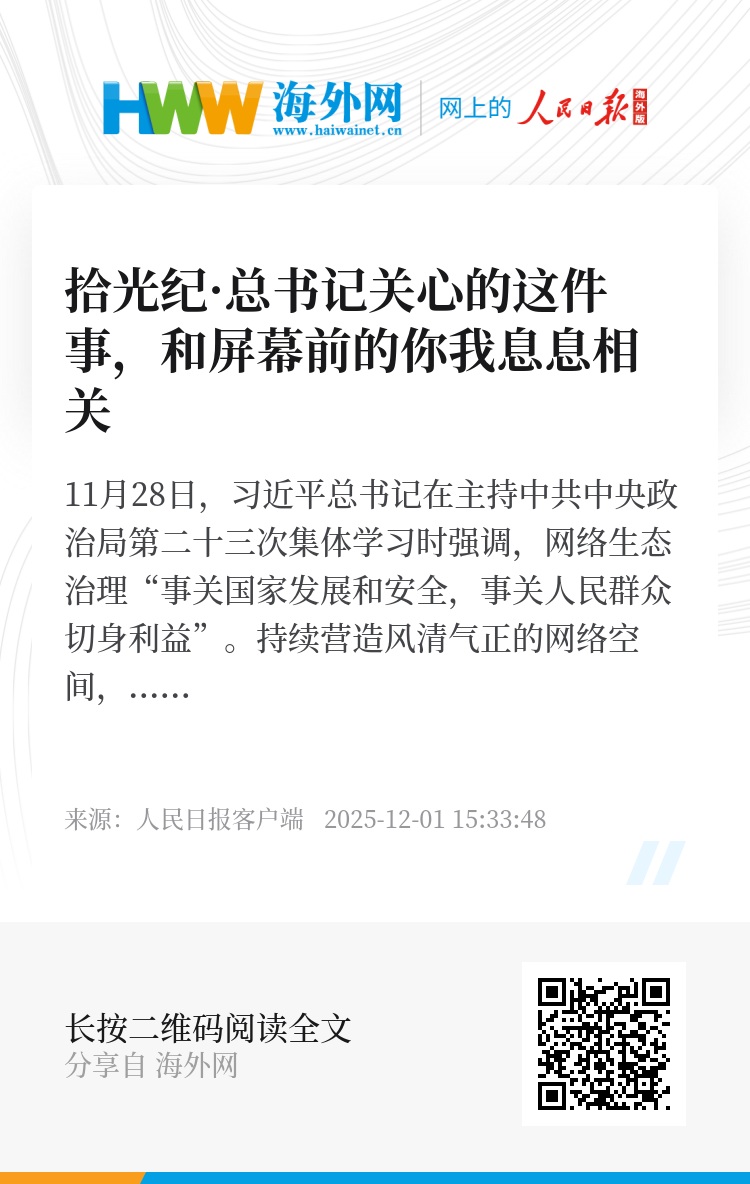 11月28日,习近平总书记在主持中共中央政治局第二十三次集体学习时强调,网络生态治理“事关国家发展和安全,事关人民群众切身利益”。持续营造风清气正的网络空间,推动构建网络空间命运共同体,总书记关心的这件事,和屏幕前的你我息息相关。