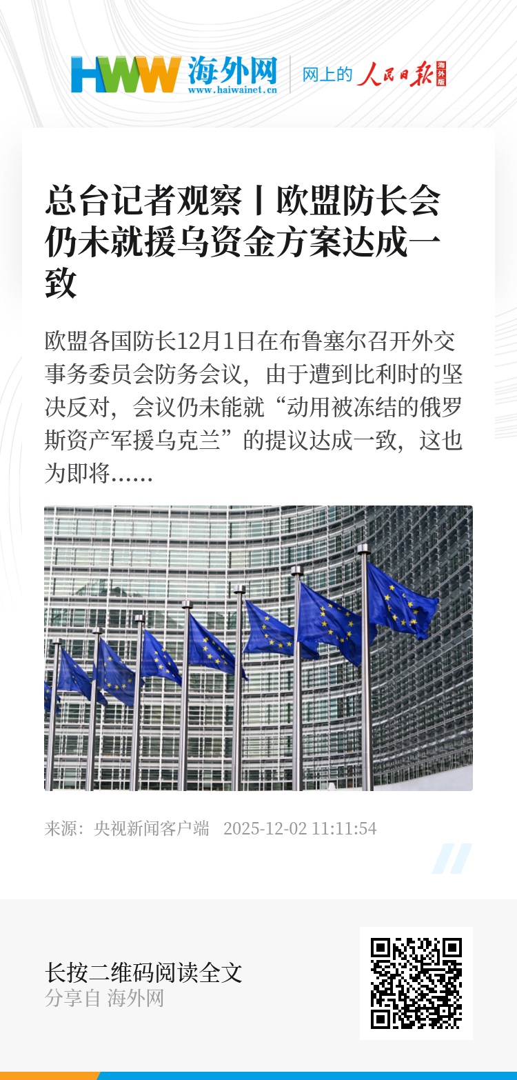 总台记者 朱曦莉:本次欧盟防长会的核心目标,就是为12月18日至19日举行的欧盟峰会统一立场,尤其是在动用存放在比利时欧洲清算银行的俄罗斯资产以贷款给乌克兰的问题上。欧盟委员会希望峰会能就该问题达成一致,从而不必让各国在财政吃紧之际再掏真金白银。
