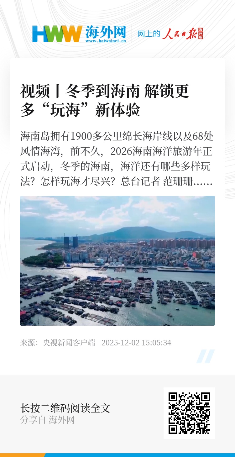 海南岛拥有1900多公里绵长海岸线以及68处风情海湾,前不久,2026海南海洋旅游年正式启动,冬季的海南,海洋还有哪些多样玩法?怎样玩海才尽兴?