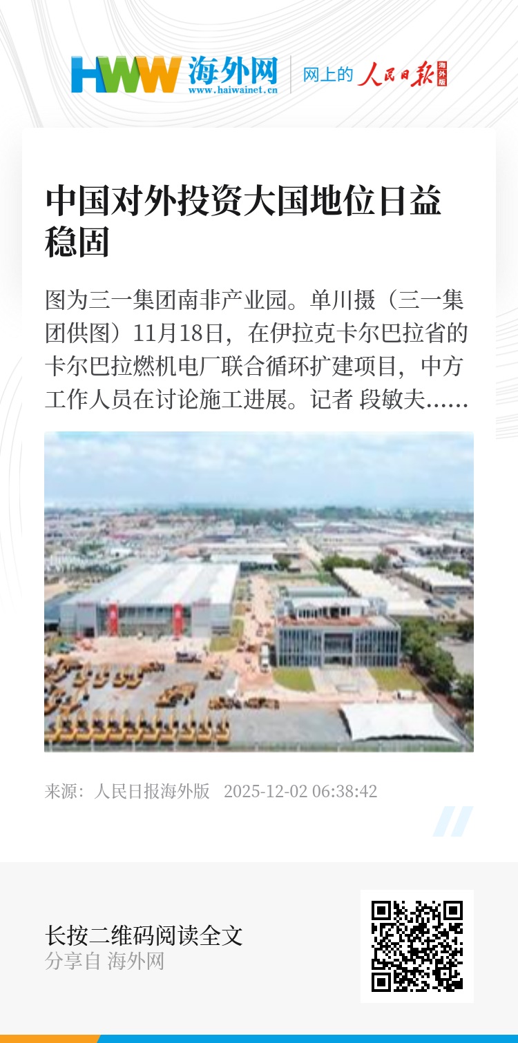 分析人士认为,高水平对外开放是“走出去”和“引进来”并重的开放,中国企业对外投资高质量发展,不仅有利于全球要素优化配置,也有利于相关国家和地区经济社会发展及民生改善,更好实现互利共赢。